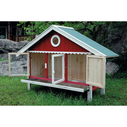 Kleintierstall aus robustem und lasiertem Nadelholz. Mit verzinkter Wanne zum Herausziehen, das erleichtert die Reinigung.
