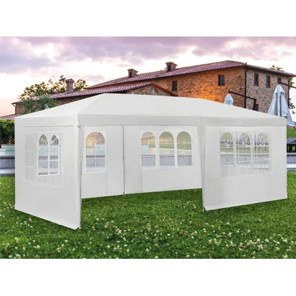 Faltpavillon 3x6m mit Seitenteilen und erhöhtem Dach.