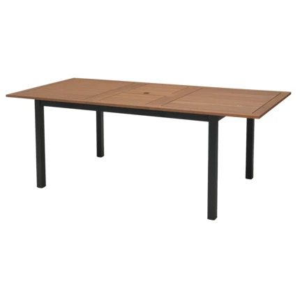 lagernd Lagerhaus Saalfelden (ändern)Der Ausziehtisch »Riva« vereint modernes Design mit natürlicher Optik und ist die ideale Ergänzung für Garten, Terrasse oder Balkon. Das stabile Gestell aus pulverbeschichtetem Aluminium sorgt für hohe Stabilität und Witterungsbeständigkeit, während die Tischplatte aus geöltem, FSC-zertifiziertem Eukalyptusholz eine warme und hochwertige Ausstrahlung bietet. Dank der praktischen Butterfly-Ausziehfunktion lässt sich der Tisch im Handumdrehen von 150 cm auf 200 cm verlängern und bietet so bequem Platz für mehrere Gäste. Höhenverstellbare Kunststofffüße sorgen zudem für einen sicheren Stand auch auf unebenem Untergrund.