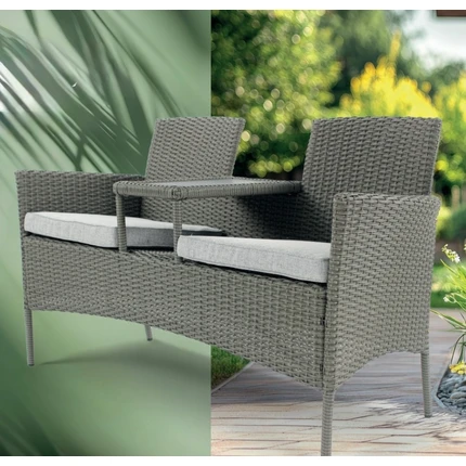 Gartenbank 2-Sitzer mit Tisch inkl. Sitzpolster in Rattanoptik