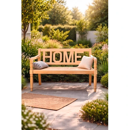 Die Bank »Home« ist eine dekorative und gemütliche Sitzgelegenheit für Garten, Terrasse oder Eingangsbereich. Gefertigt aus FSC-zertifiziertem Akazienholz überzeugt sie mit natürlicher Optik im Teak-Look und langlebiger Qualität. Das Rückenteil mit dekorativem HOME-Schriftzug verleiht der Bank einen besonderen Charme. Gedrechselte Armlehnen und Beine sorgen zusätzlich für eine stilvolle, klassische Gestaltung. Als 2-Sitzer bietet die Bank ausreichend Platz zum Entspannen im Freien.