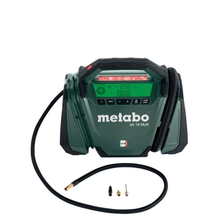 Der Metabo AK 18 Multi ist ein multifunktionaler Akku-Kompressor für vielseitige Anwendungen rund ums Aufpumpen und Entlüften. Mit Hochdruck- und Volumenfunktion eignet er sich ideal zum Befüllen von Auto- und Fahrradreifen sowie von Bällen, Luftmatratzen, Gästebetten und weiterem Pool- und Freizeitzubehör.