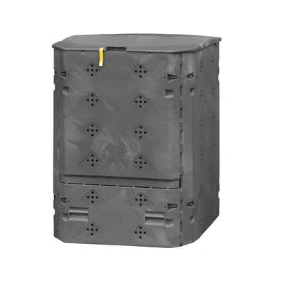 UV-stabiler Komposter mit 600 l Fassungsvermögen und großen Befüll- und Entnahmeklappen mit Windsicherung.