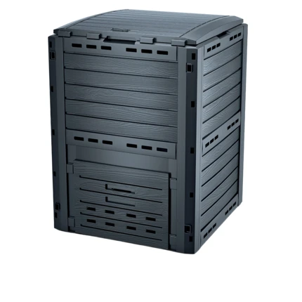 Der Komposter für ca. 280 l Inhalt ist mit wenigen Handgriffen stabil aufgebaut. Die obere Klappe ist durch 2 Veriegelungen sicher verschlossen.