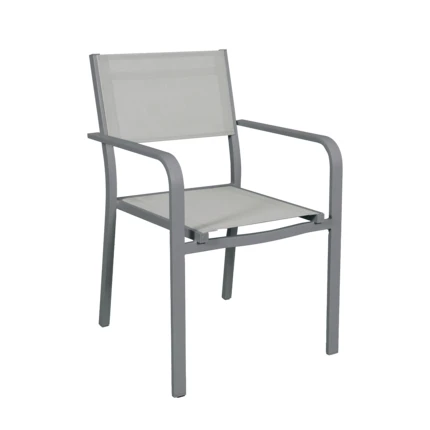 Der Stapelstuhl »Toulon« ist eine praktische und komfortable Sitzgelegenheit für Garten, Terrasse oder Balkon. Das stabile Gestell aus pulverbeschichtetem Aluminium und Stahl sorgt für eine langlebige Konstruktion und hohe Stabilität. Die pflegeleichte Textilenbespannung bietet angenehmen Sitzkomfort und ist gleichzeitig wetterbeständig sowie leicht zu reinigen. Dank der stapelbaren Bauweise lässt sich der Stuhl platzsparend verstauen, wenn er nicht benötigt wird.