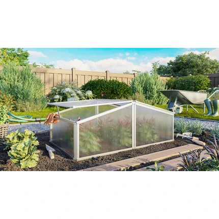 Das Frühbeet Extenso besticht durch die Leichtbauweise und die variabel einstellbaren Fenster. Alle Fenster sind sowohl aufstellbar als auch seitlich verschiebbar und garantieren dadurch ein ungehindertes Wachstum der Pflanzen. Bei Bedarf kann das Frühbeet über größer gewachsene Pflanzen einfach hin-weg gehoben und an anderer Stelle wieder aufgestellt werden. Die Frühbeete bestehen aus einem pul-verbeschichteten Aluminiumrahmen und sind mit 4 mm starken Hohlkammerplatten aus Polycarbonat (PC) eingedeckt.
