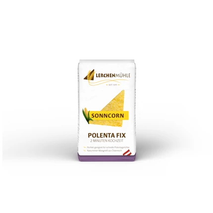Durch ein spezielles Herstellungsverfahren ist Sonncorn Polenta fix bereits nach 2 Minuten verzehrfertig. Ideal für die schnelle Küche zwischendurch.