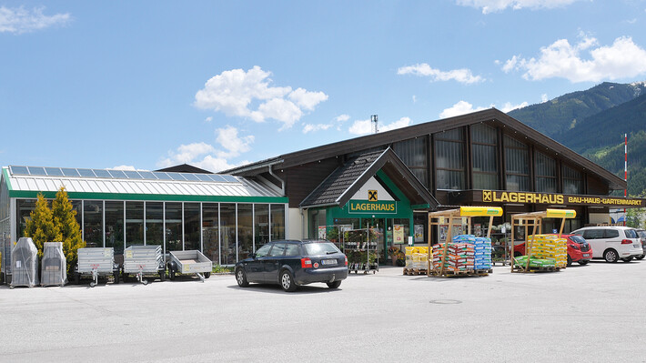 Großes Lagerhaus mit Gartenfachabteilung und umfangreicher Bauausstellung. Direkt an der Bundesstraße am Ortseingang zu Mittersill. Professionelle Beratung rund um Haus, Garten, Baustoffe, Land- und Forstwirtschaft sowie Heiz- und Brennstoffe. Weber-Grill Partner.